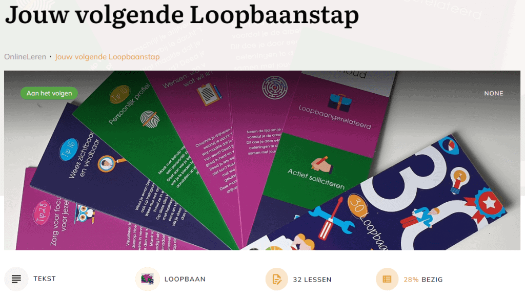 Lees meerKortingsactieIn het kader van de Week van de Loopbaan (18-22 september) en Week van het Werkgeluk (25-29 september) gereduceerde tarieven voor onbeperkte toegang tot alle onderdelen van het programma “Jouw volgende Loopbaanstap” Actie is verlengd tot 1 november. Profiteer nu